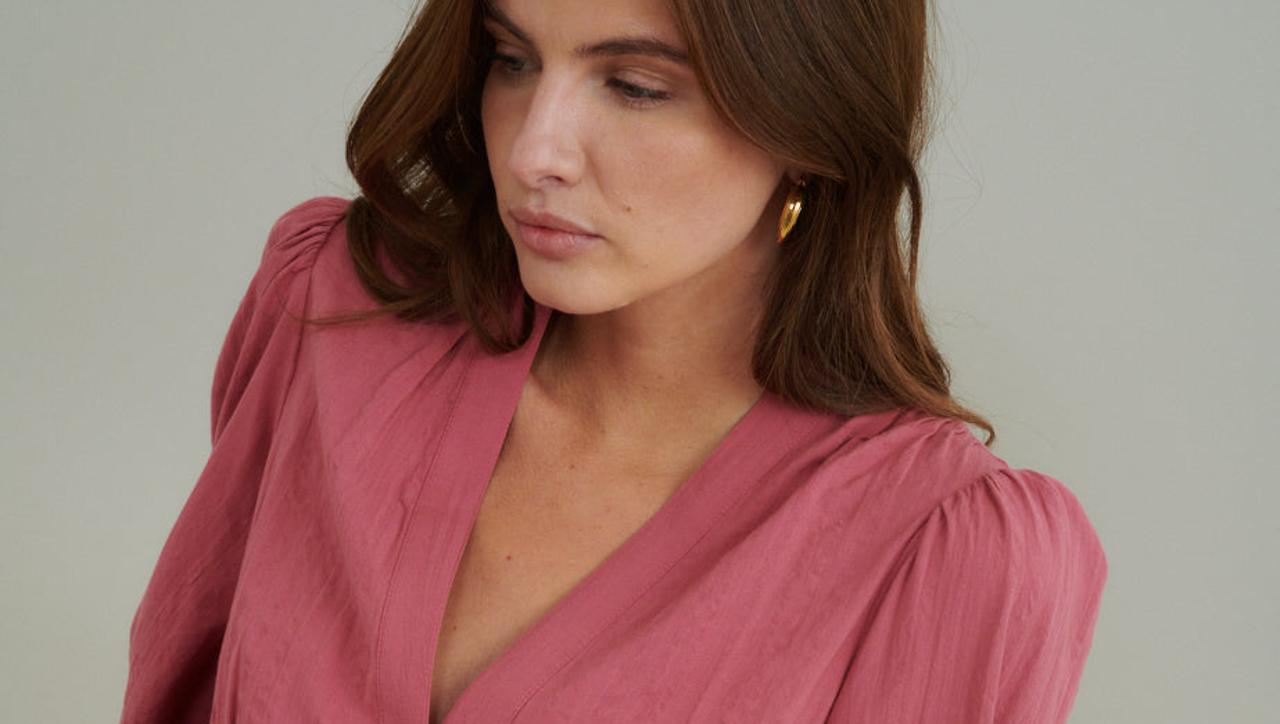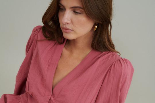 Osim što je praktična, ova haljina zrači suptilnom elegancijom zahvaljujući nježnoj ružičastoj boji, V-izrezu i diskretnim gumbima. A-kroj čini ju izuzetno udobnom i laskavom za svaku figuru. Izrađena je od 100% organskog pamuka, što ju čini ugodnom za nošenje i eco-friendly opcijom. Lako se održava i bez problema se pere u perilici rublja.