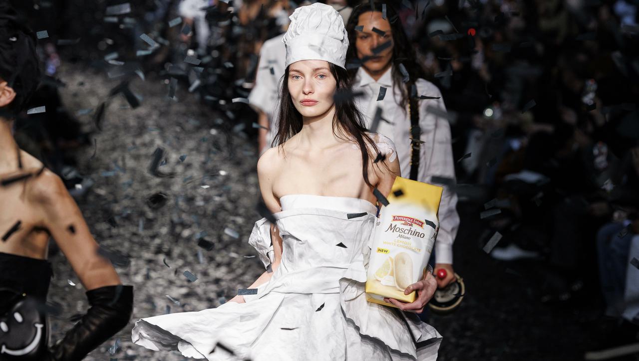 - Pod kreativnim vodstvom Adriana Appiolaze, brend nastavlja tradiciju spajanja mode i humora, a ove su sezone najveću pažnju privukle torbe u obliku vrećice keksa, hrpe špageta, demižona vina i pakiranja vreća za smeće