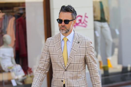 U središtu njegova outfita nalazi se karirani sako u toplim, zemljanim tonovima, koji instantno daje dozu profinjenosti, ali i ležernosti. Uparen je s klasičnom svijetloplavom košuljom - vječnim komadom koji balansira cijelu kombinaciju, no prava čarolija počinje s detaljima. Žuta kravata s diskretnim uzorkom unosi vedrinu i proljetnu energiju, a istu paletu prati i kroz - čarape. Žute, razigrane i savršeno usklađene s kravatom, one su možda i najefektniji element outfita, te najbolji dokaz da stil često leži upravo u onim 'skrivenim' detaljima koji se otkriju tek u pokretu.