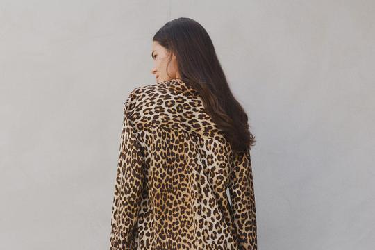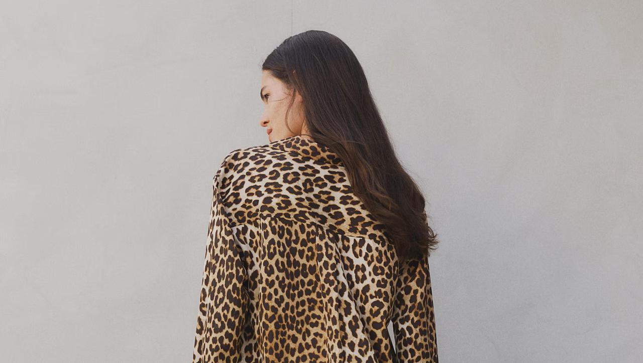 Pidžama odijelo leopard uzorka u kombinaciji s oversize kaputom i mokasinama pruža urban, ali profinjen izgled. Ovaj styling dokazuje da se pidžama stil može nositi i u hladnijim danima, uz dozu modnog glamura. Nosiv je od jutarnje kave do večernjeg eventa – samo zamijeni ravne cipele za pete i dodajte clutch torbicu.
