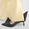 Nasuprot njima stoji tamna midi suknja od lana. Stroga, pročišćena i gotovo intelektualna, priziva buržoaski dnevni stil kakav Prada često reinterpretira. Upravo u toj jednostavnosti dobiva snagu: nosiva je uz košulju, tanki pulover ili T-shirt, ali uvijek djeluje promišljeno, nikada banalno.