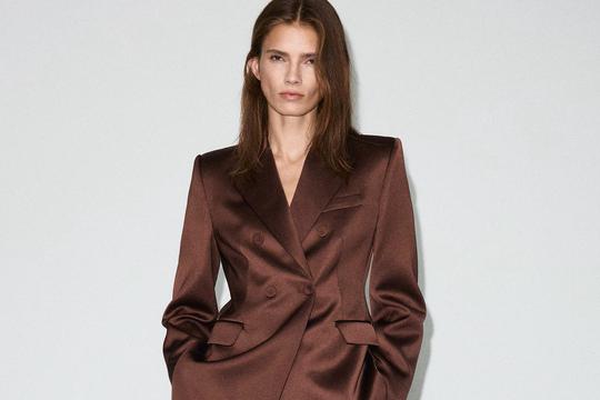 Upravo zato odijelo od satena u čokoladno smeđoj boji djeluje kao mali modni trik: izgleda luksuzno, a zapravo je nosivo danju i noću te dugo, dugo nakon sezone svečanosti.
