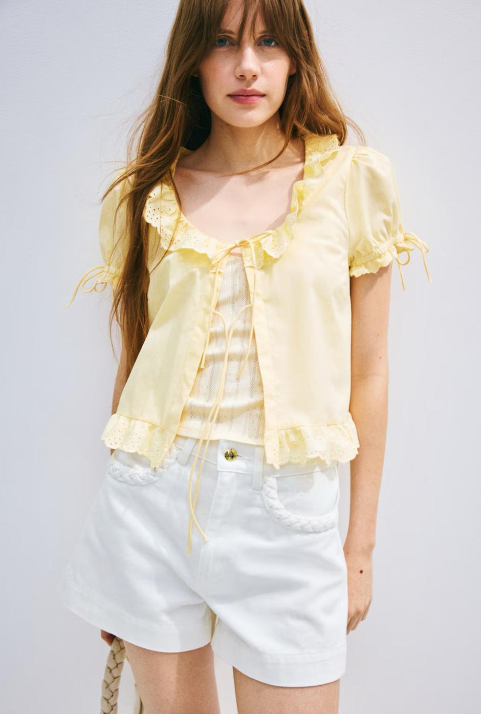 Iako najčešće dolaze u bijeloj boji, povremeno se pojavljuju i u gingham uzorku, a s obzirom na to da predstavljaju savršenu alternativu običnoj bijeloj majici ili topu, unoseći dašak romantike u ljetnu garderobu, njihova popularnost nimalo ne čudi. Brendovi poput Dôena čiji je 'Traveler Top' rasprodan već drugu godinu zaredom, a kojeg obožava i Kaia Gerber, predvodnici su ovog trenda, no u stopu ih prate i high-street divovi poput H&M-a, Zare i Reformationa.