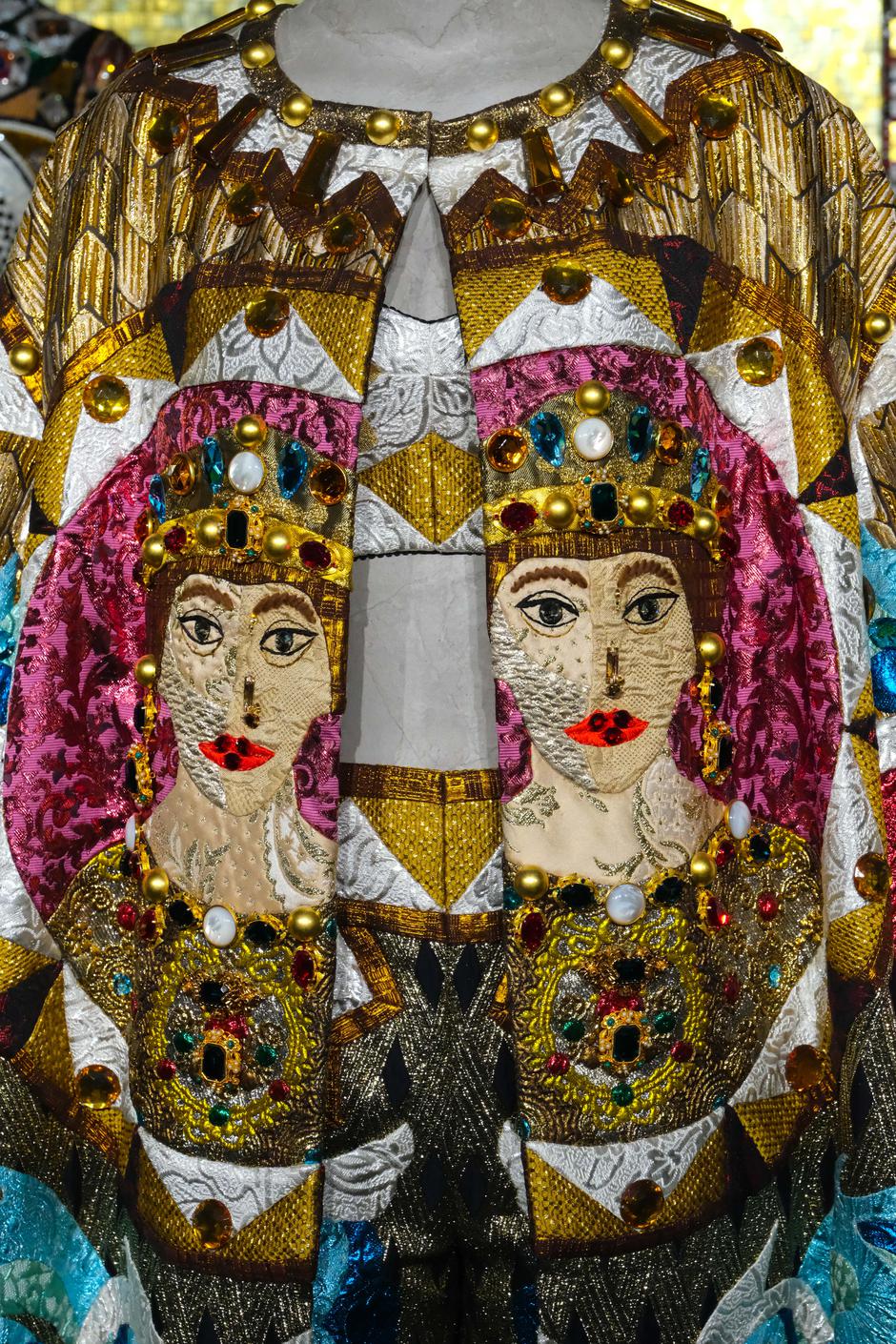 Među vrhuncima je haljina inspirirana venecijanskim Murano staklom, optočena staklenim mozaicima Orsoni Venezia 1888, proizvođača stakla koji stoji iza zlatnih mozaika bazilike sv. Marka. Kustosica ju je opisala kao „skulpturu na tekstilu — čista izrada uzdignuta do umjetnosti.“