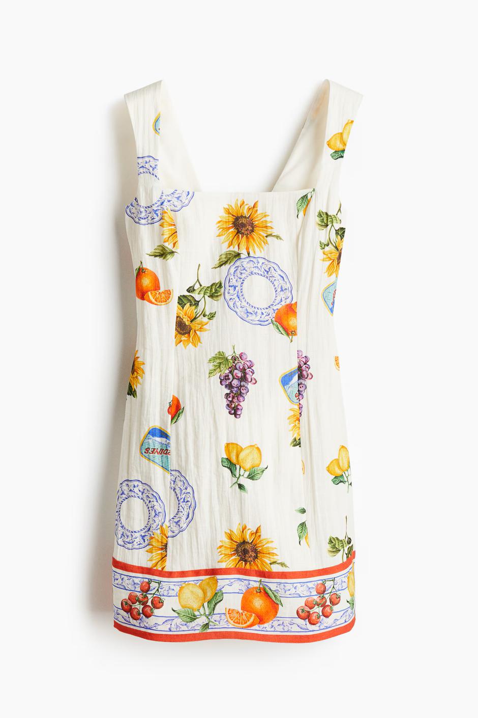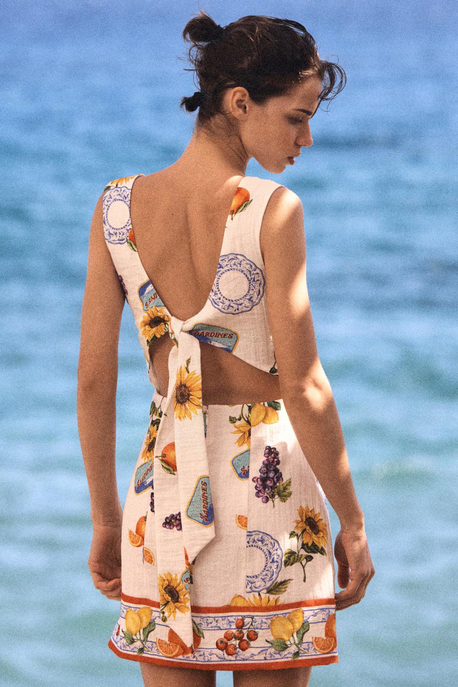 - Ljetni motivi poput limuna, rajčica, suncokreta i sardina stigli su na police H&M-a i to u obliku bijele mini haljine prozračnog kroja s mašnom na leđima