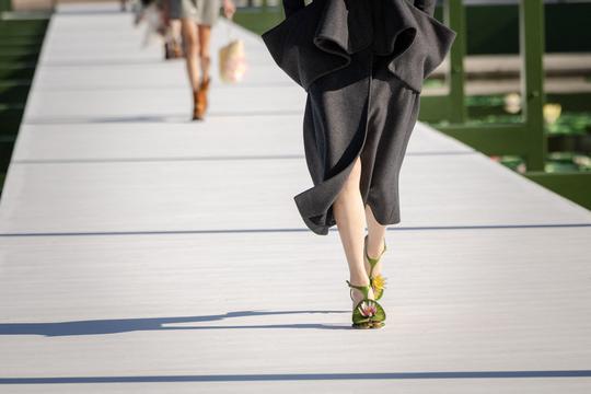 Simone Rocha ostala je vjerna svojoj romantičnoj estetici sa satenskim sandalama, a Giambattista Valli predstavio je mules natikače i balerinke u boji fuksije i puderasto ružičastoj, s golemim ružama na prednjem dijelu. Od Loewea do Zimmermana, poruka je bila jasna: obuća je platno za novu vrstu cvjetne raskoši.