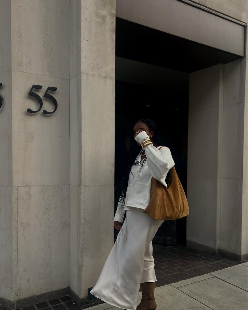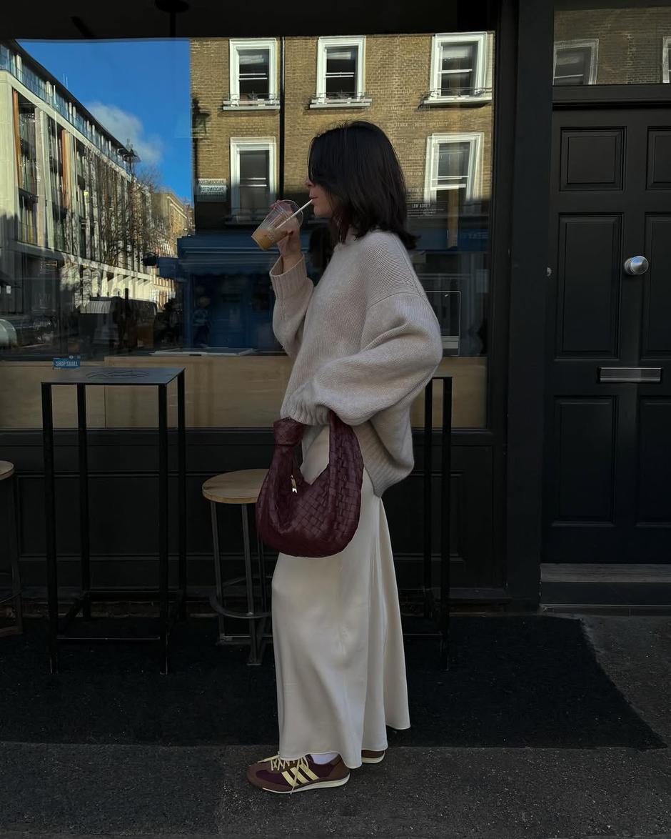 Možda nisu najočitiji izbor za satenske suknje, ali upravo tu leži njihova moć. Jednostavne tenisice koje nisu previše robusne satenskoj će suknji dati urbani, opušteni vibe, a uz oversized blejzer, basic top i crossbody torbu - spremna si za kavu u gradu, poslovni sastanak ili piknik u omiljenom parku.