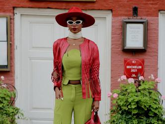 No, i kožnom jaknom bi se izdvojila iz mase - vrlo zgodan i originalan detalj na ovoj su zlatni gumbi i još k tome - dvostruko kopčanje. Čizmice s blok petom, napočale, naušnice... sve stvara savršeno skladnu cjelinu, a nama su za oko posebno zapele hlače...