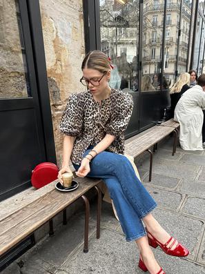 Franka se odlučila za popularnu majicu s motivom iz crtanog filma, točnije rečeno Minnie Mouse, koju je kombinirala uz vruće hlačice ispranog trapera. Za potpunu udobnost je odabrala japanke, a od detalja veliku torbu s trendovskim resicama u tamnosmeđoj boji. Tirkizna narukvica na ruci dala je dašak ljeta, ali pravi detalj je svakako slamnati šešir crne boje s velikim obodom kao idealna zaštita za sunce i modni detalj. Velike sunčane naočale su zaokružile čitavu priču koju je izvrsno nadopunio Vedran.