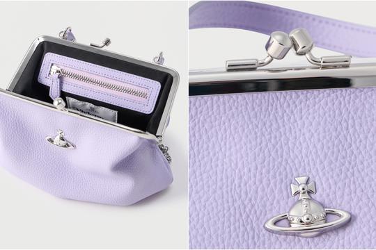 Mala torbica u nijansi lavande iz ateljea Vivienne Westwood priziva gotovo zaboravljeni tip modnog predmeta, onaj između torbe i novčanika, bliži intimnom predmetu nego praktičnom spremniku. Njezina forma podsjeća na starinske coin purses: zaobljeno tijelo, kratka ručka i metalna kopča koja se otvara jednim klikom, poput sitnog mehanizma iz nekog toaletnog stolića s početka 20. stoljeća. Danas smo opsjednuti serijama s povijesnim kostimima, a ovo je jedan od detalja koji zasigurno ima ulogu u toj priči.