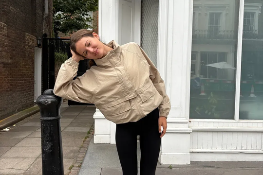 Capri tajice daju ležernu eleganciju čak i jesenskom outfitu, a trenutačno vrlo populrna jakna s funnel (lijevak) ovratnikom dodaje strukturu izgledu. Uz minimalistične balerinke, outfit dobiva opuštenu vibru koja je savršena za grad ili kavu s prijateljicama.