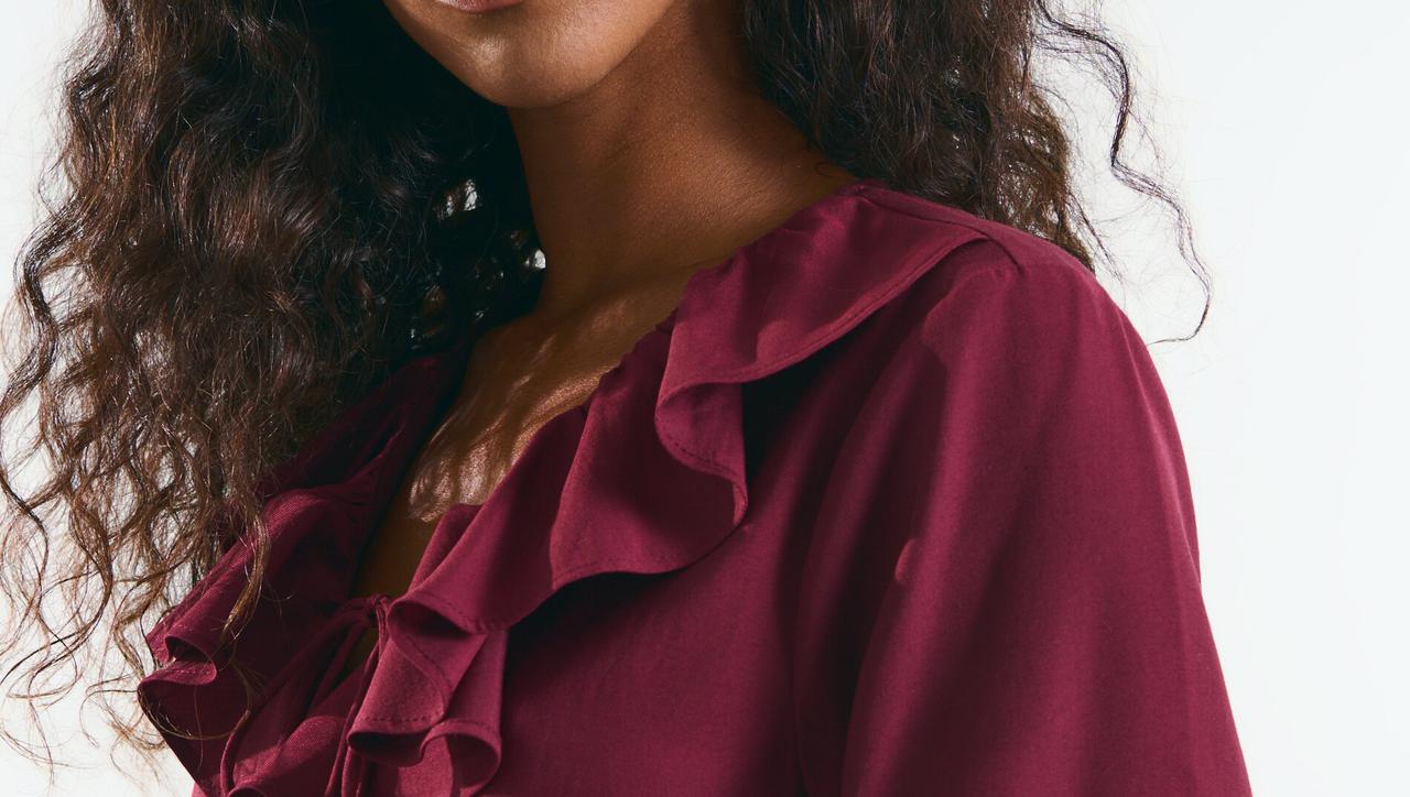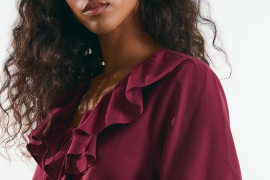 Dolazi u dvije prekrasne boje, tamnoj bordo i ciklama ružičastoj, koje su idealne za hladnije dane. Bordo se savršeno uklapaj u jesensku paletu, a ova intenzivna ružičasta je razigrava i razbuđuje. V-izrez s volanima i vezicama daje haljini romantičan, ali i trendovski izgled, dok struk koji se može suziti ističe siluetu i pruža udobnost tijekom cijelog dana. Midi duljina čini je profinjenom i prikladnom za različite prigode, od poslovnih sastanaka do obiteljskih ručkova ili večernjih izlazaka.