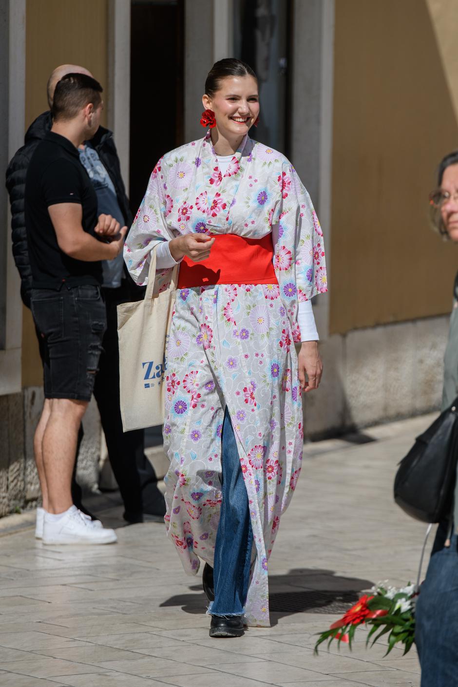 Nama je pažnju posebno privukao prizor iz zadarskog đira koji ne samo da nas je zaintrigirao, već nas je i oduševio – dvije mlade Zadranke srcem grada prošetale su u komadima koje ne viđamo baš svaki dan: u elegantnim, rescvjetalim kimonima. Među uobičajenijim modnim odabirima bilo je nemoguće ne zamijetiti ih, a mi smo se, naravno, zapitali što stoji iza njih.