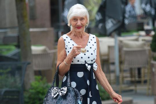 Oh, ne posvećuju samo mlade djevojke i poslovne žene više pozornosti i vremena odijevanju. Strast prema modi i lijepoj odjeći ne zna za godine i dobro je što je tako! Ipak, ovako razigrani, čak i smioni styling ne viđamo često na pripadnicama starije generacije - i baš zato je genijalan! Ova šarmantna gospođa zaslužila je mnogo pohvala jer više elemenata u njezinoj modnoj kombinaciji je odlično, dobro odabrano i dobro spojeno s drugim komadima odjeće i modnim dodacima.