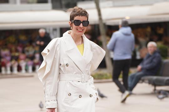 Da ovaj baloner treba ostaviti da govori sam za sebe, zna i ova dama koja ga je iskombinirala uz sasvim jednostavnu, nježno žutu majicu koja tek blago proviruje iz V izreza, skinny tamnoplave traperice i niske Zara tenisice s kravljim uzorkom koji ovog proljeća postaje sve popularniji te bi čak mogao zamijeniti i obožavani leopard uzorak. U ovoj elegantnoj, ali mrvicu dramatičnoj kombinaciji, ne smijemo zaboraviti niti na modne dodatke koji su zapravo sasvim jednostavni - crne četvrtaste naočale koje baš lijepo uokviruju lice ove prolaznice te klasična crna torba čiji lanac suptilno dodaje još malo odvažnosti.