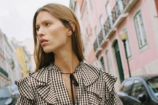Foto: Zara, karirana bluza s volanima (29,95 eura)