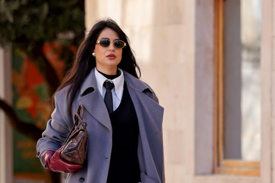 - Uz dugi sivi kaput dramatične siluete, slojevit styling s bijelom košuljom, kravatom i crnim puloverom te odvažni zaokret u obliku mini suknje i visokih čizama, savršeno je izbalansirala poslovnu eleganciju i seksepil