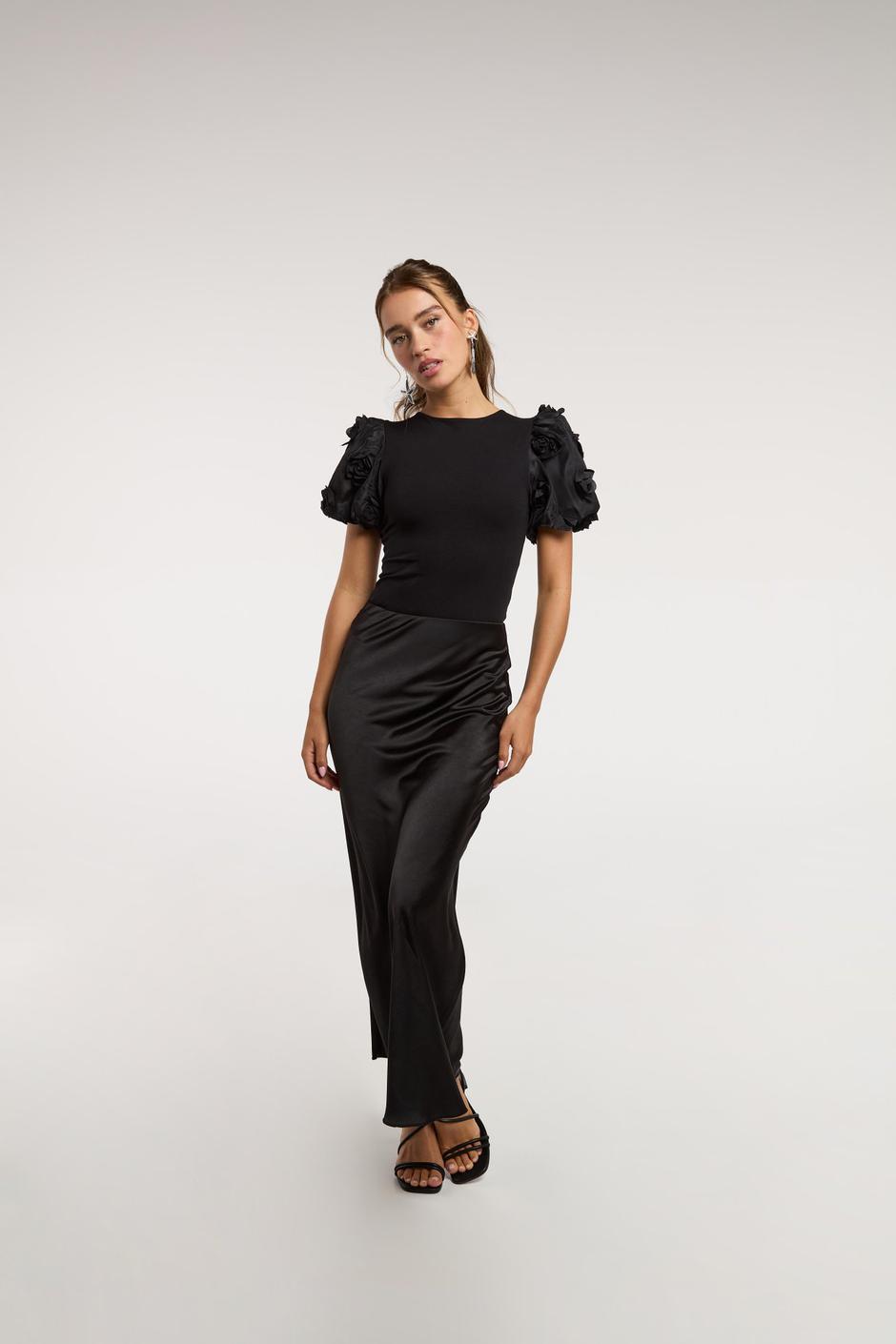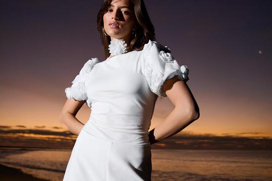 Ovaj prelijepi body iz nove New Yorkerove kolekcije dostupan je u dvije nijanse – crnoj i bijeloj – i predstavlja savršen spoj elegancije i udobnosti. Njegov uzorak uključuje kratke rukave ukrašene cvjetnim aplikacijama koje mu daju nježan, romantičan štih, dok mu uski kroj omogućava naglašavanje figure. Ovaj body je iznimno prilagodljiv i može se uklopiti u bezbroj stilizacija.