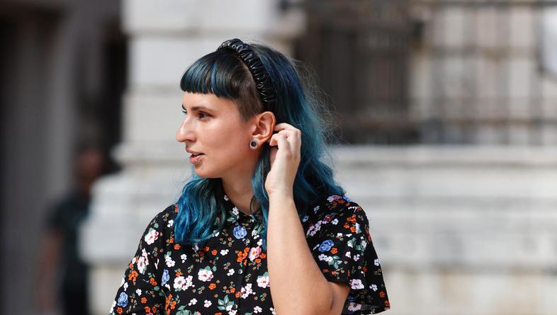 Stajling s twistom! Tako bismo mogli opisati stajling u kojem smo uočili mladu prolaznicu na zadarskim ulicama. Ona se odlučila na vrlo ženstven modni komad - cvjetnu haljinu. U ovom slučaju, riječ je o crnoj košulja-haljini midi dužine, koja je ukrašena nizom sitnih cvjetića.