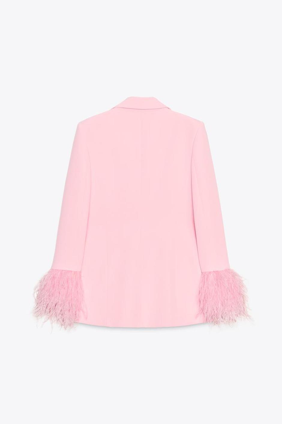 - Ružičasti sako s perjem iz Zare apsolutni je (pro)ljetni hit koji kombinira eleganciju i dozu zabavne drame