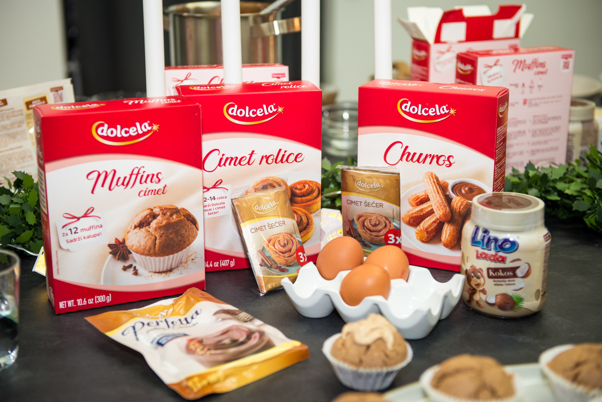 Kako je vrijeme prolazilo, radni su se stolovi punili gotovim slasticama. Dolcela churrosi posluživali su se s kremama od Lino Lade, Dolcela cimet rolice rezale su se još tople, a Dolcela cimet muffini ukrašavali su se u hodu predivnim Dolcela Perfetta puding kremama.