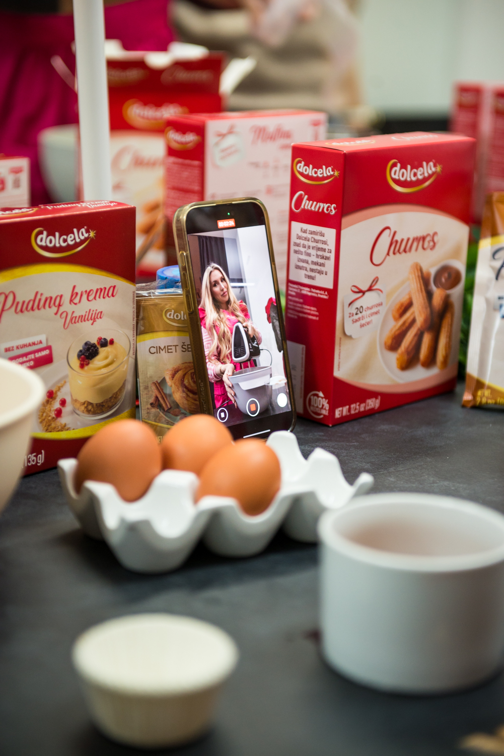Slastice su se u Gourmet Punktu, pod stručnim vodstvom Sandre Rončević, pripremale paralelno, u nekoliko kuhinjskih zona. Dok su jedni radili Dolcela churrose i umake, drugi su izvlačili tijesto za Dolcela cimet rolice, a treći su se bavili Dolcela cimet muffinima i završnim detaljima. Razgovor se neprestano miješao s kuhanjem, uz povremeno kušanje i komentiranje onoga što je već bilo gotovo.